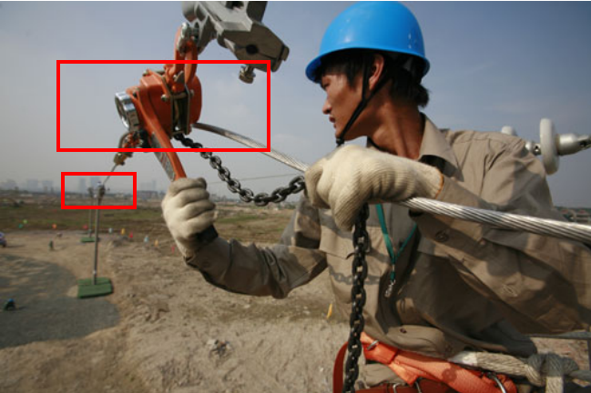 圖中標(biāo)注的是手扳葫蘆與手扳葫蘆正在斜吊的物品。我們可以看到工人師傅一人就可以對(duì)手扳葫蘆進(jìn)行操作,一人就可簡(jiǎn)單的對(duì)重物進(jìn)行作業(yè)。