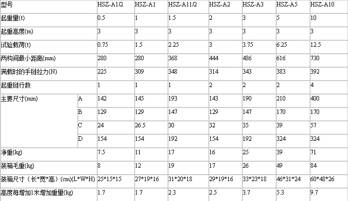 好,接下來,讓咱們看一下咱們五環手拉葫蘆的參數表: